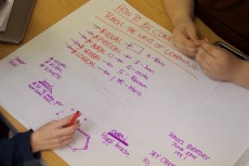 Flipchart paper with ideas for the Big Democracy Education project